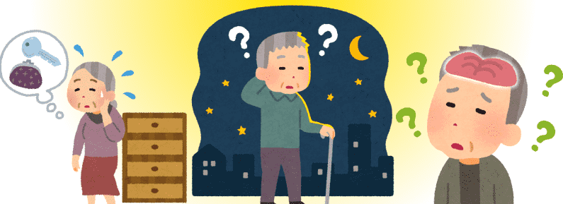 - 날짜나 계절, 현재 자신이 있는 장소나 이유를 혼동합니다.